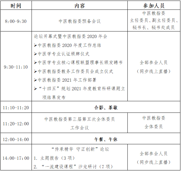 2.线上会议:观看形式另行通知。请及时关注中医药教育网、中医教指委网站、“全国中医药教育发展中心”公众号相关通知。